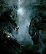 Nazgûl HorsesWhen travelling through the lands the Nazgûl often use their wraith-horses. These horses use their sensitive senses to help the ring-wraiths in the search for the ring.